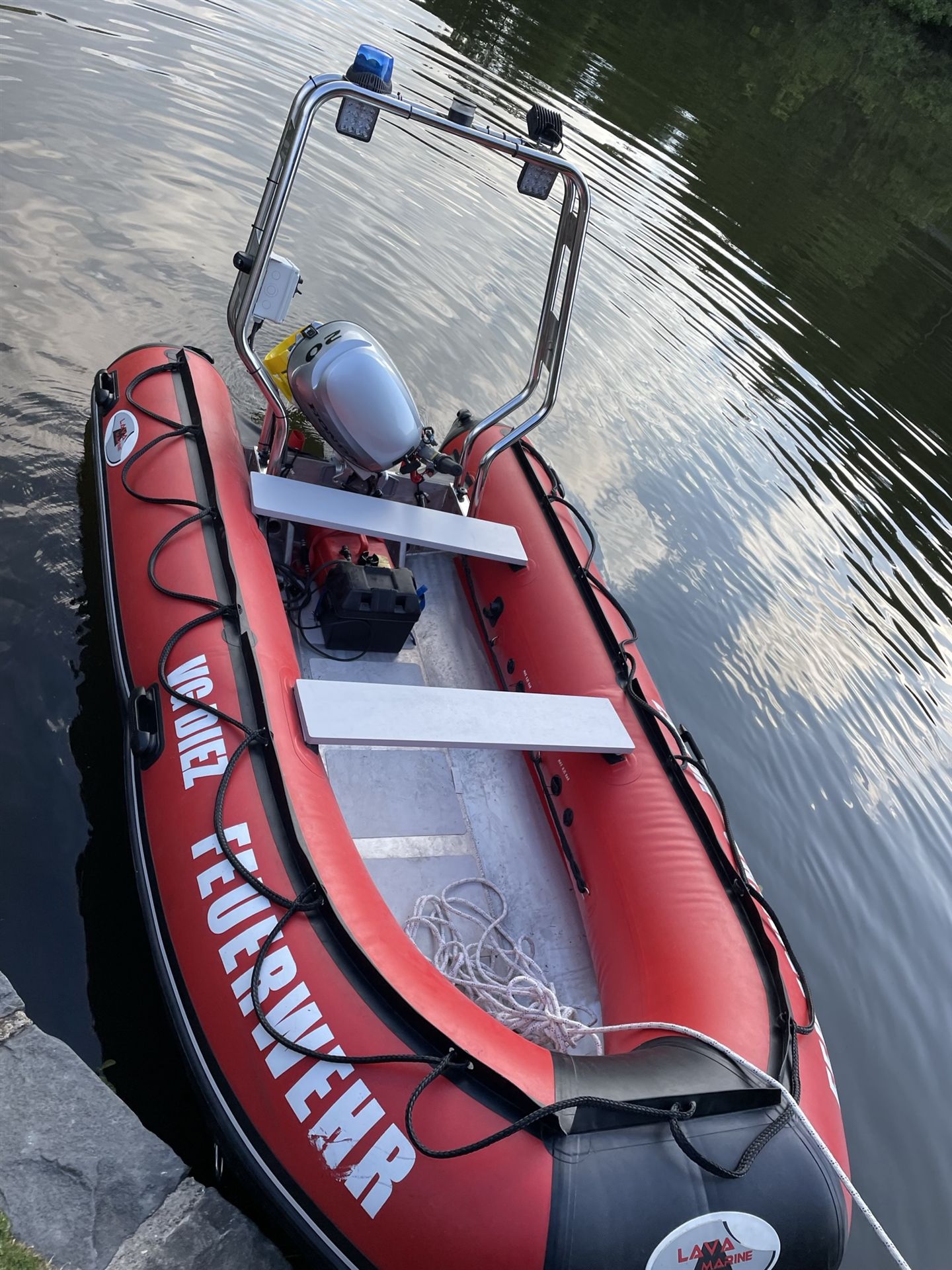 Unser Förderverein hat das Boot zwischenzeitlich mit Blaulicht und Arbeitsscheinwerfer ausgestattet.