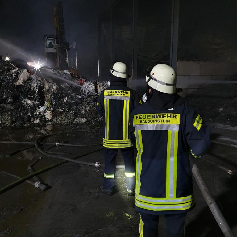 Auch die Balduinsteiner Feuerwehr wurde gegen 21:30 Uhr zu dem brennenden Recyclingbetrieb im Diezer Industriegebiet alarmiert.