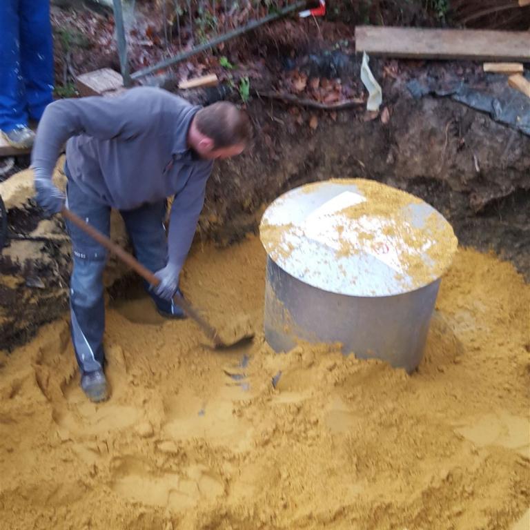 Die Grube für den Gastank wurde vom Förderverein in Eigenleistung gebaut. Vielen Dank an die Firma Baugeschäft Lenau für die Unterstützung bei diesem Projekt.