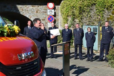 Das neue Fahrzeug sei somit – gemeinsam mit den Einheiten Altendiez, Holzappel und Isselbach – zukünftig optimal für diese speziellen Einsätze geeignet. Immer wieder faszinierend sei, so Grün weiter, wie aus 18 Seiten Papier – dem Leistungsverzeichnis, nach dessen Vorgaben das neue TSF-W gebaut wurde – ein solch beeindruckendes Feuerwehrfahrzeug entstehe. Er wünschte der Einheit damit stets viel Zufriedenheit und Freude und möglichst wenig Einsätze.