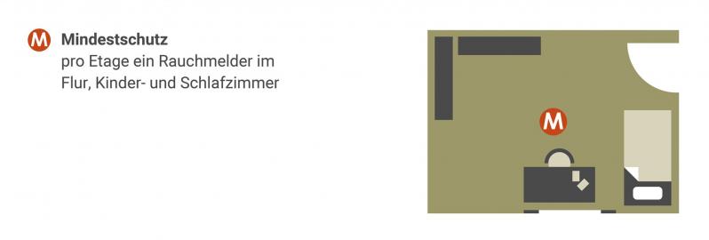 Für den Mindestschutz installieren Sie einen Rauchmelder in möglichst zentraler Position, normalerweise im Flur sowie im Schlaf- und Kinderzimmer. Rauchmelder sollten im Flur in Küchentürnähe und/oder in der Küche mit Stummschaltung installiert werden. Optimalen Schutz erzielen Sie mit je einem Rauchmelder pro Zimmer und Flur.
