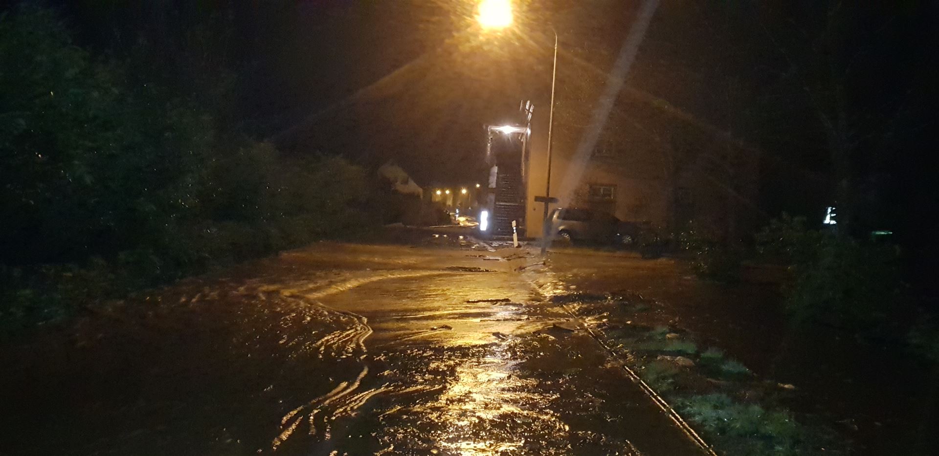 Im Anschluss daran halfen die den Kameraden aus Geilnau. Dort war ebenfalls durch Starkregen die Straße überflutet. Es wurde ein provisorische Damm errichtet der die Wassermassen aus dem Ort fernhielt...