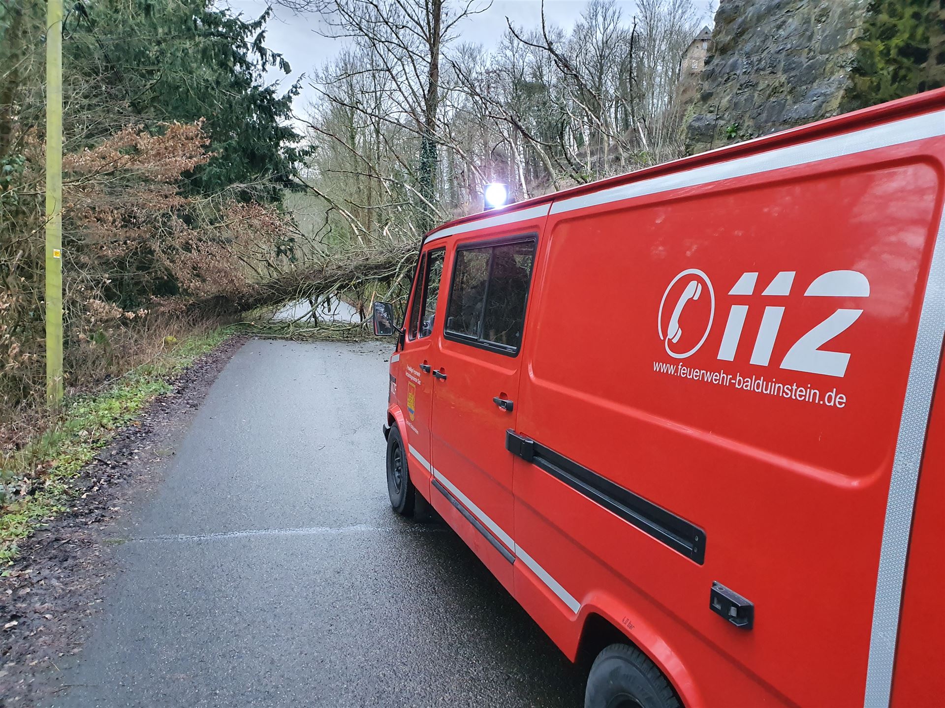 Die Balduinsteiner Feuerwehr wurde heute um 7:14 Uhr zu einem umgestürztem Baum kurz hinter dem Felsentunnel alarmiert