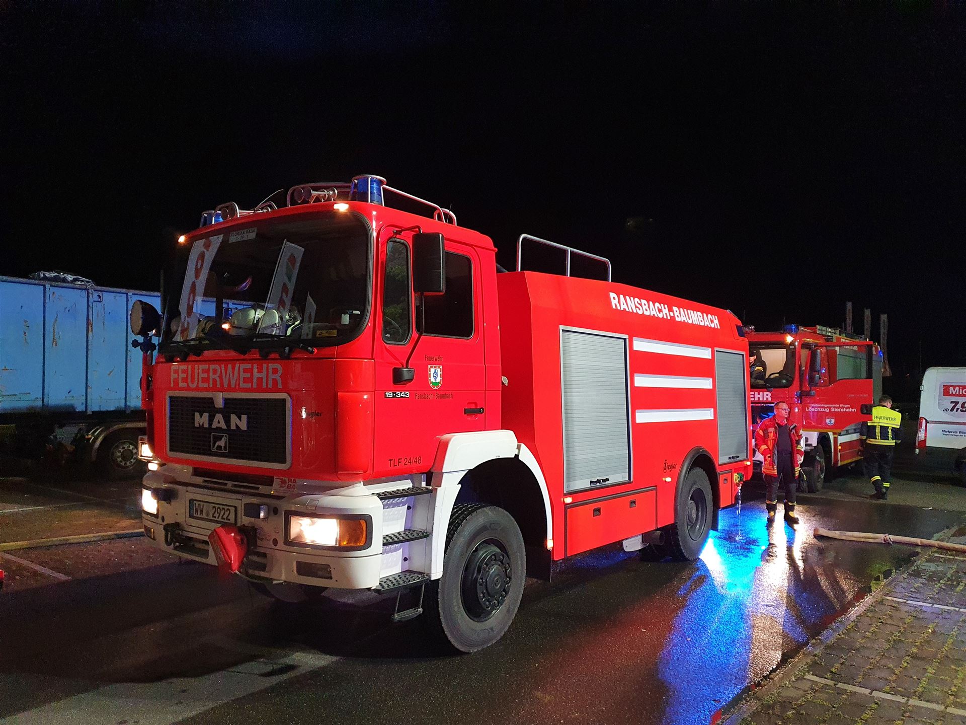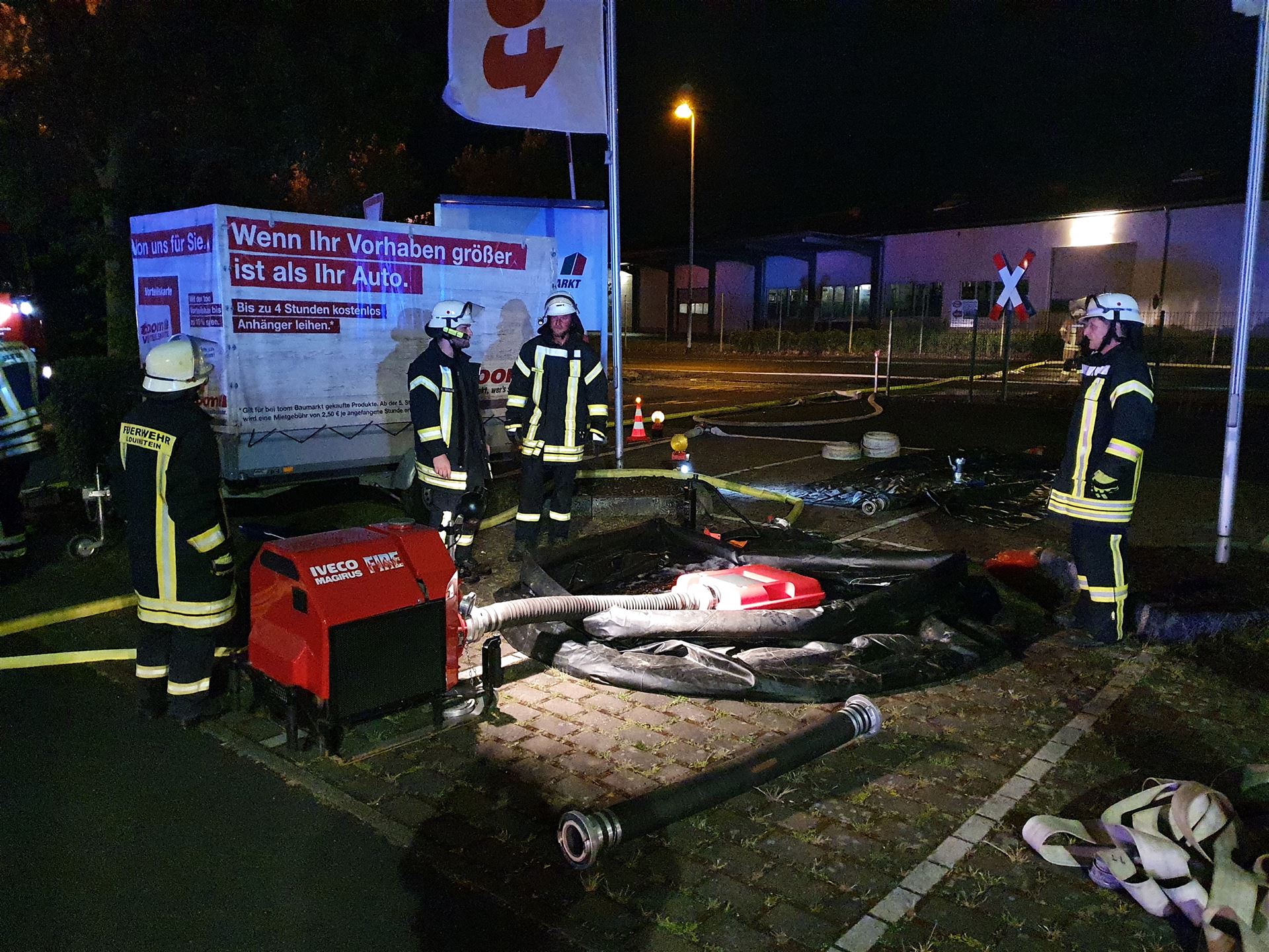 Eingesetzt waren wir auf dem Parkplatz des Toom Baumarktes. Tanklöschfahrzeuge aus Ransbach-Baumbach, Wallmerod, Selters, Siershahn sorgten im Pendelverkehr für Nachschub an Löschwasser.