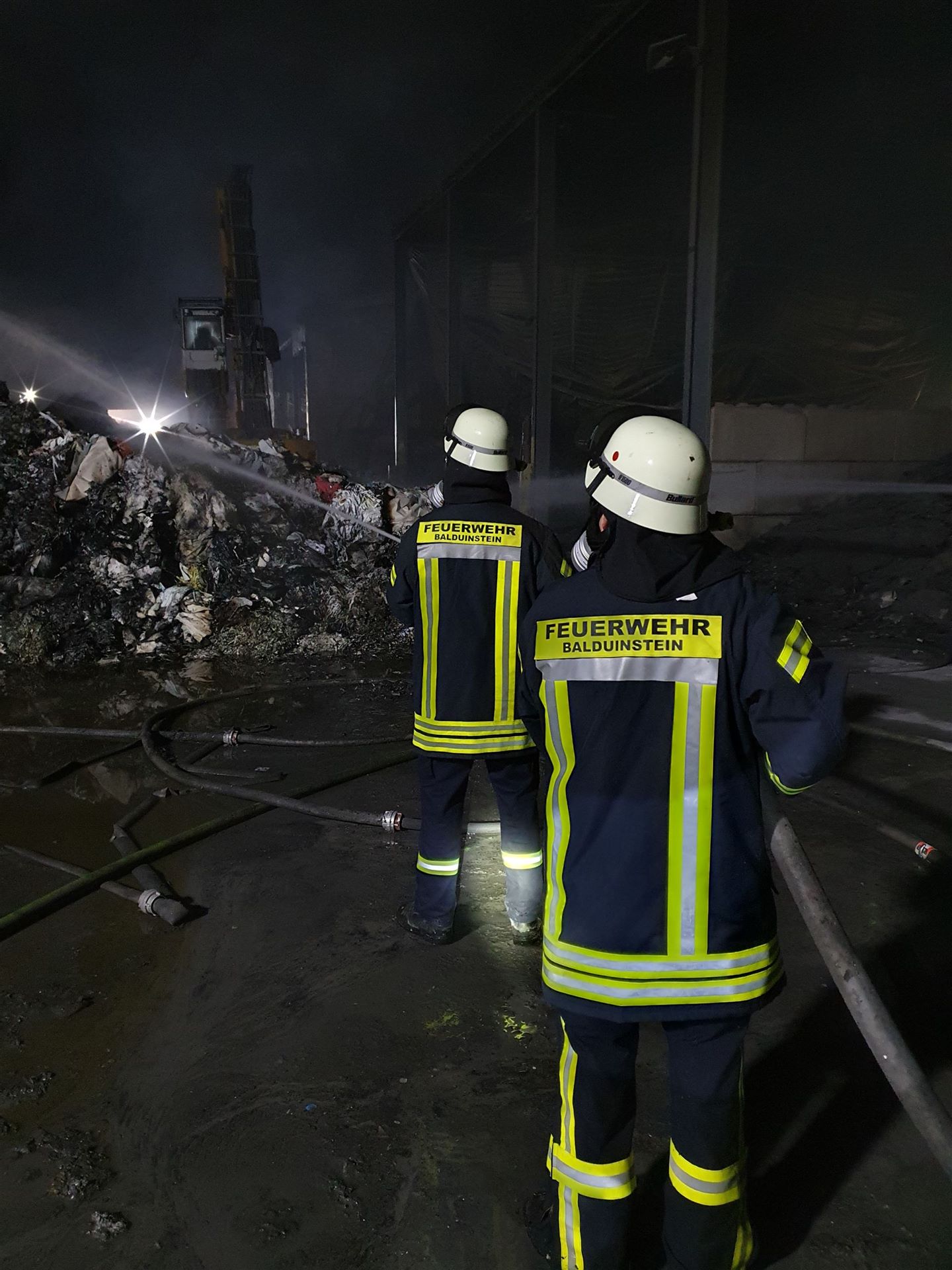 Auch die Balduinsteiner Feuerwehr wurde gegen 21:30 Uhr zu dem brennenden Recyclingbetrieb im Diezer Industriegebiet alarmiert.