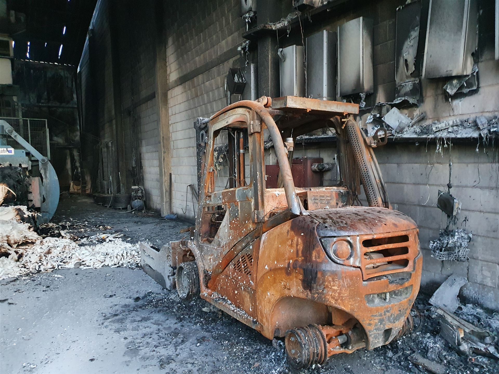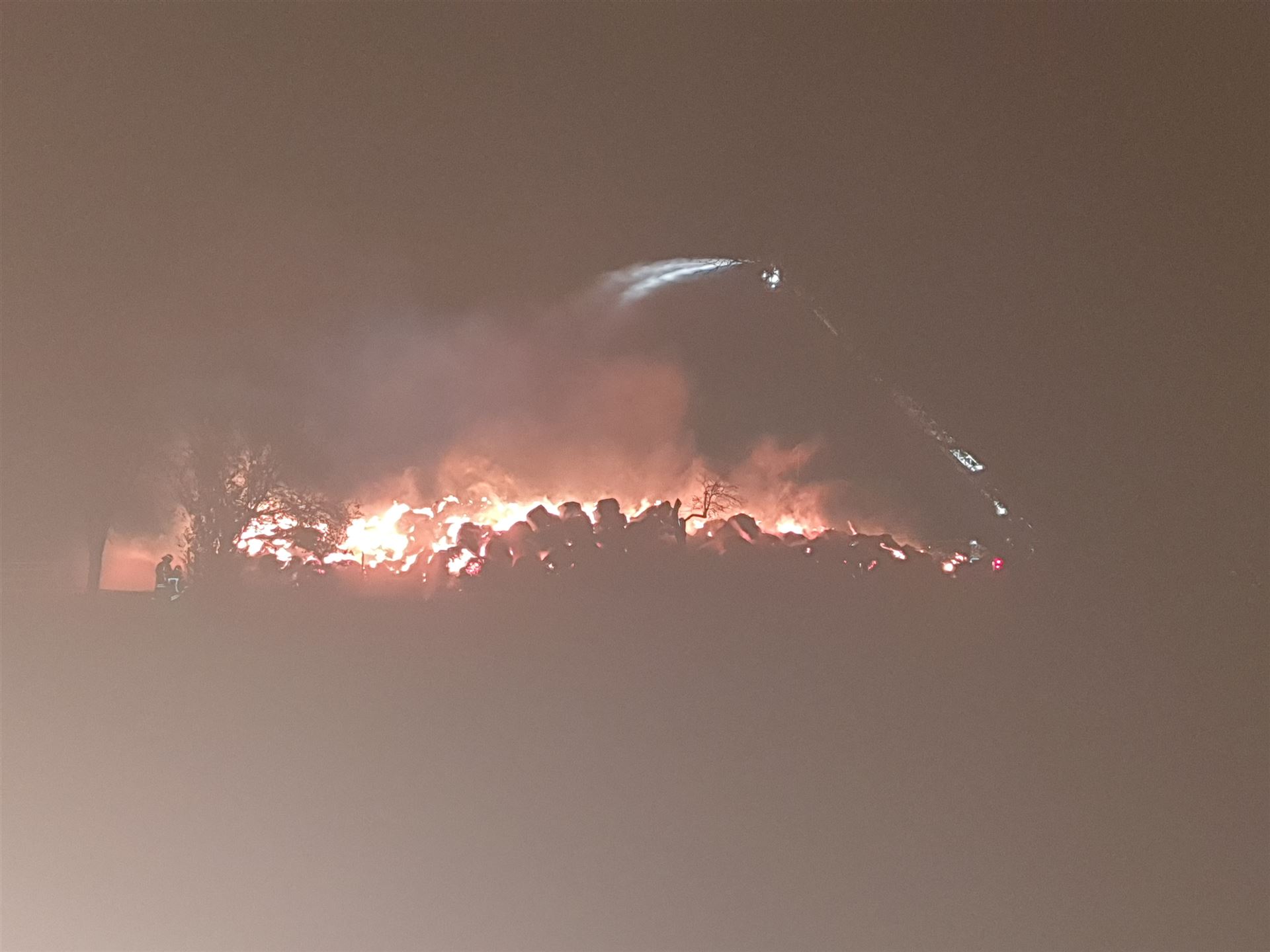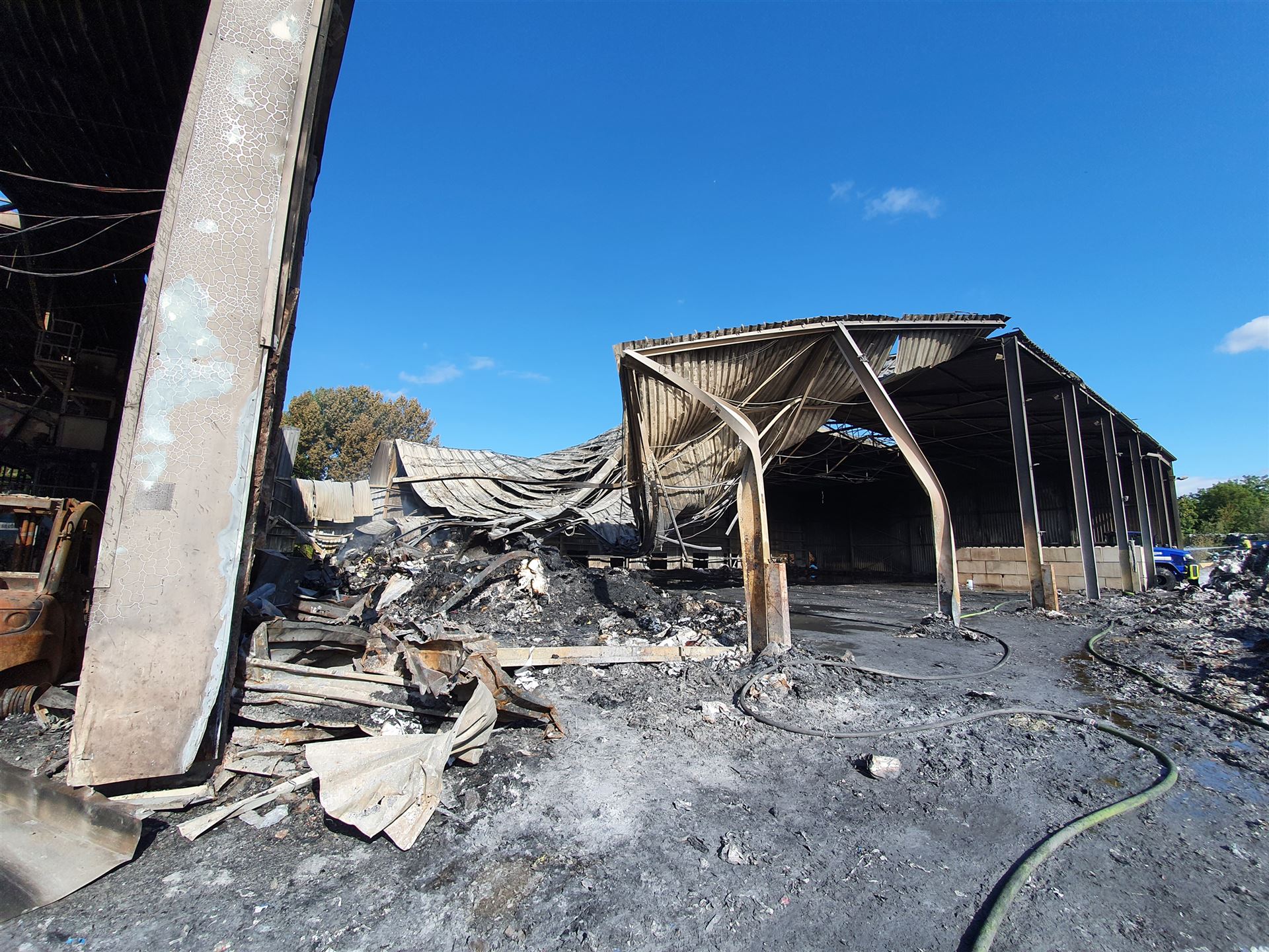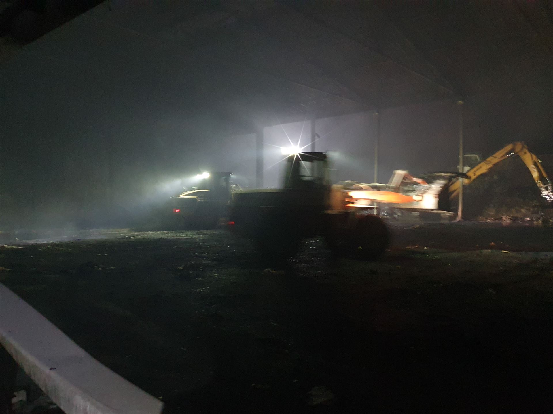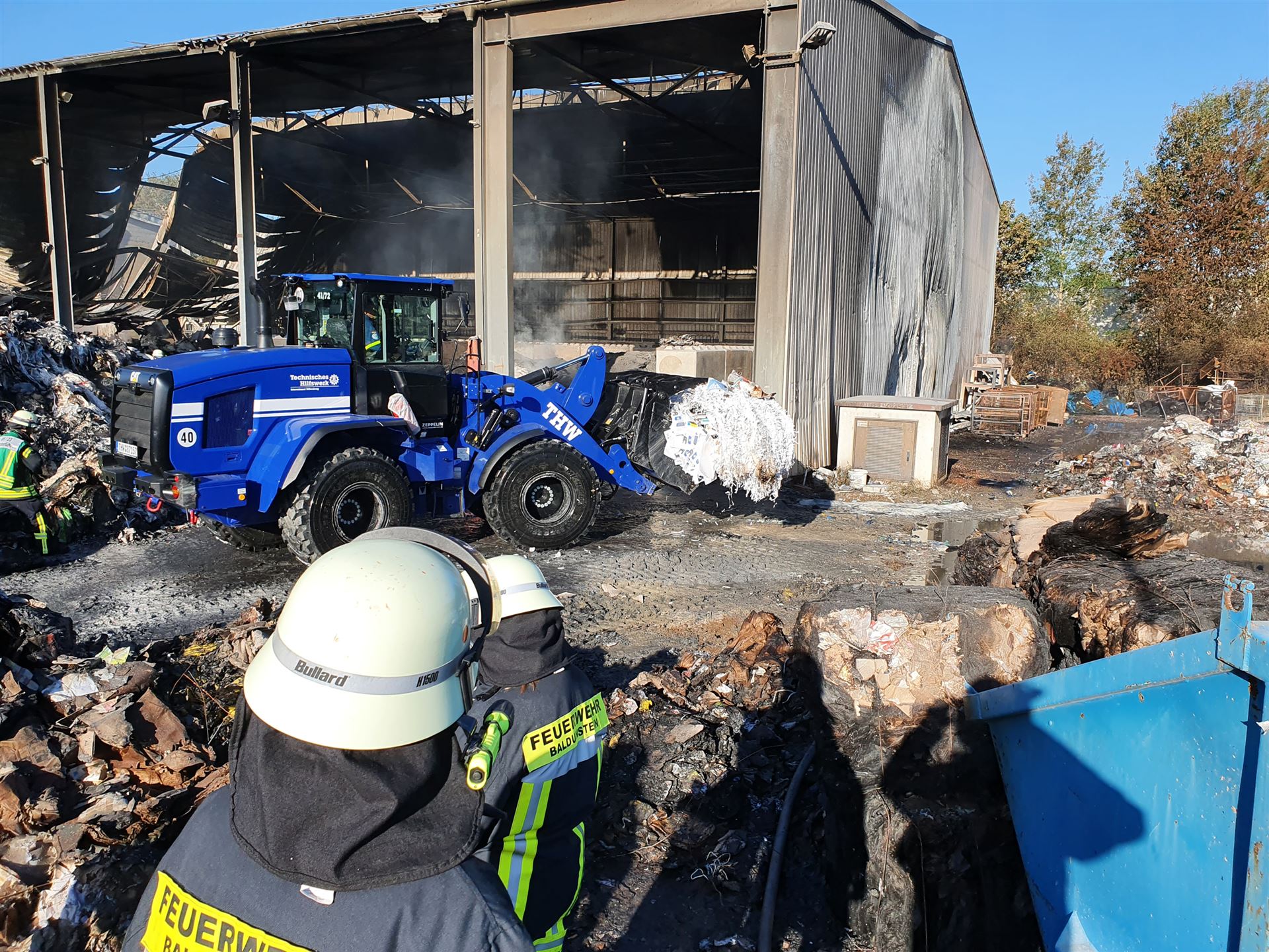 Mehrere Radlader haben das brennende Material aus der Halle gefahren, dort wurde es von unseren Trupps abgelöscht.