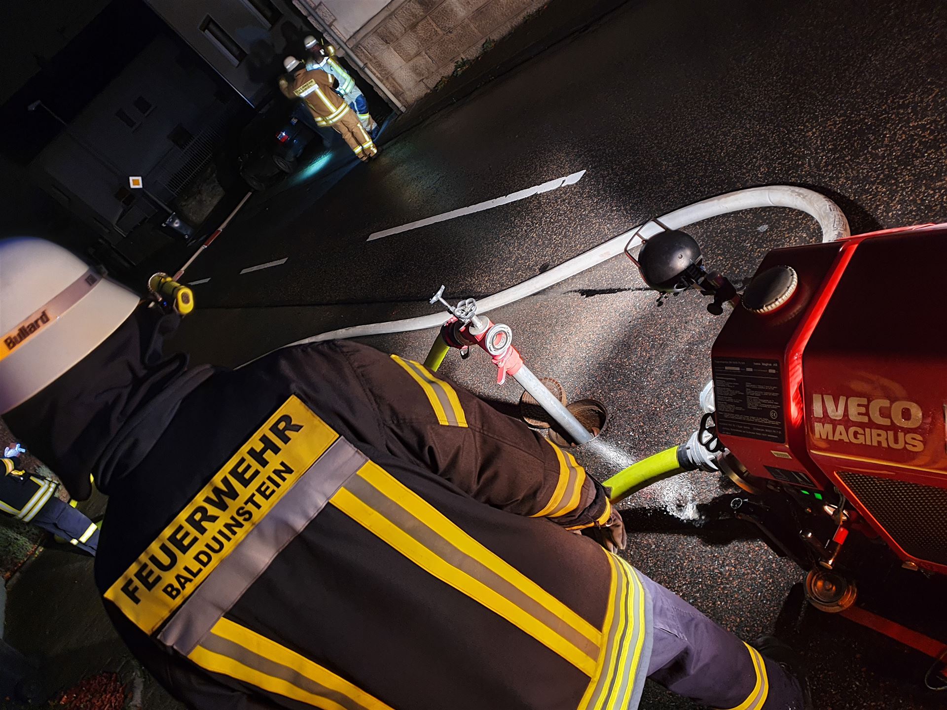 Wir unterstützten beim Aufbau der Wasserversorgung und ab ca. 6 Uhr bei den Nachlöscharbeiten.