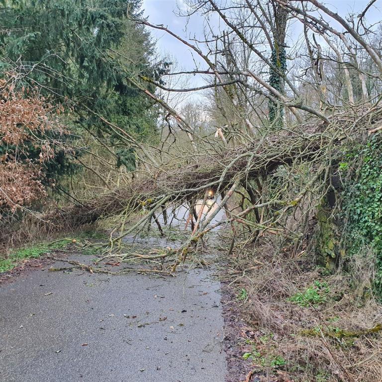 +++ Einsatz 1 / 2020 - H 1 - Umgestürzter Baum auf Telefonleitung K35 - Schaumburg +++