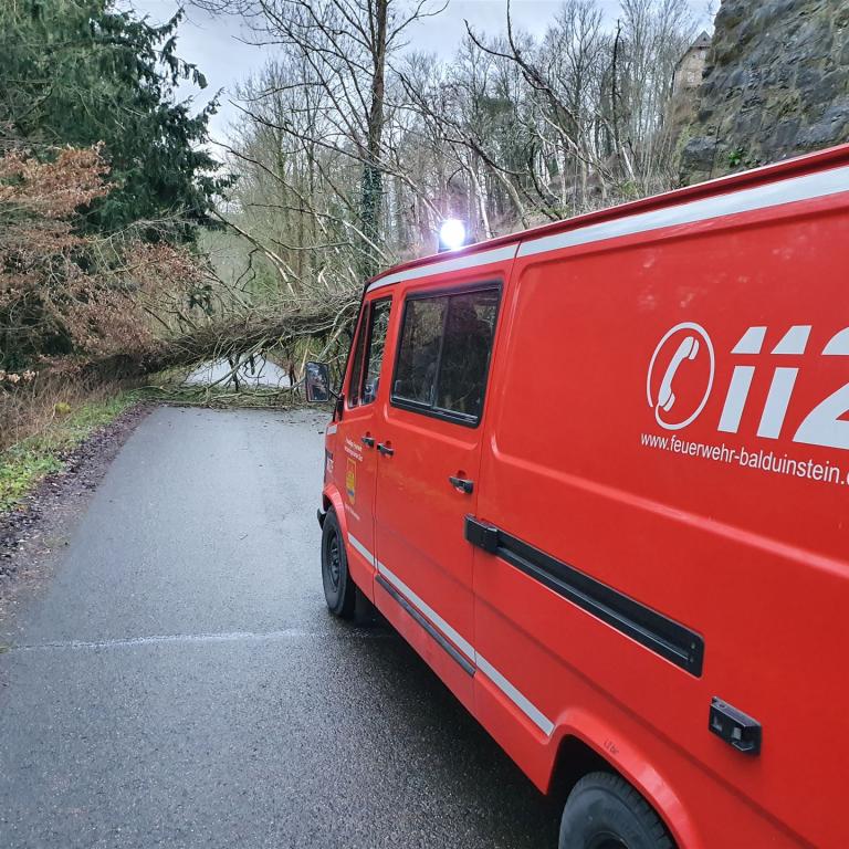 Die Balduinsteiner Feuerwehr wurde heute um 7:14 Uhr zu einem umgestürztem Baum kurz hinter dem Felsentunnel alarmiert