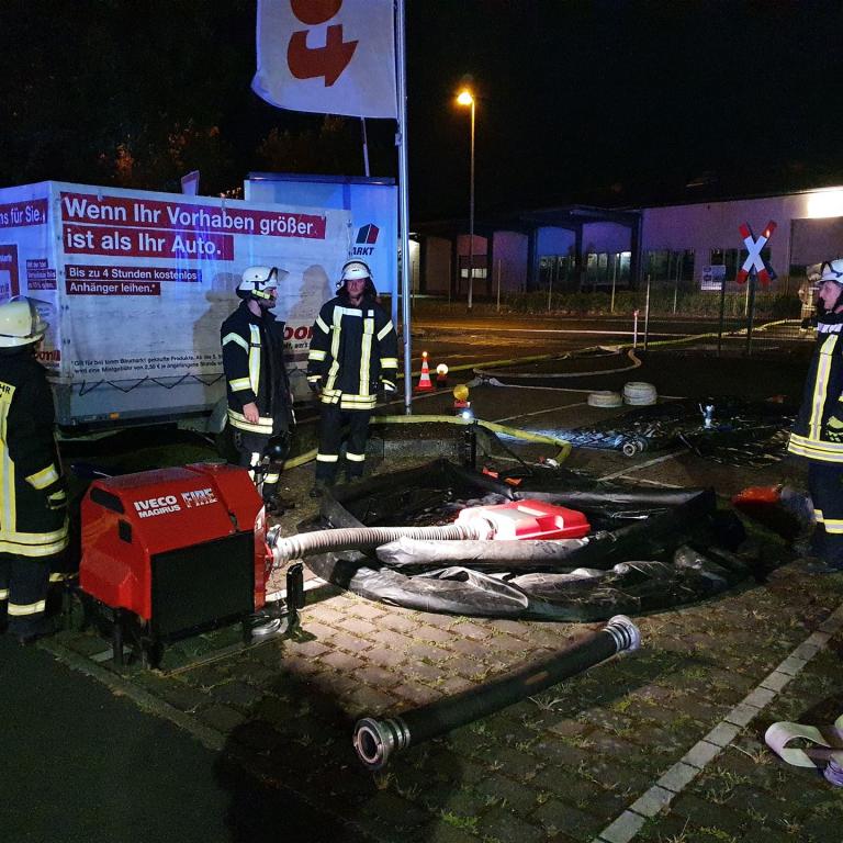 Eingesetzt waren wir auf dem Parkplatz des Toom Baumarktes. Tanklöschfahrzeuge aus Ransbach-Baumbach, Wallmerod, Selters, Siershahn sorgten im Pendelverkehr für Nachschub an Löschwasser.