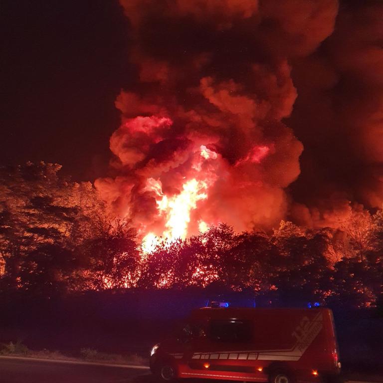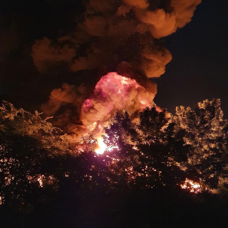 Auch die Balduinsteiner Feuerwehr wurde gegen 21:30 Uhr zu dem brennenden Recyclingbetrieb im Diezer Industriegebiet alarmiert.