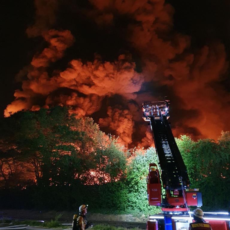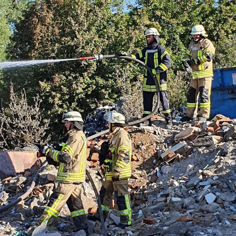 Tag 5 des Einsatzes der Feuerwehren der VG Diez im Diezer Recyclingbetrieb
