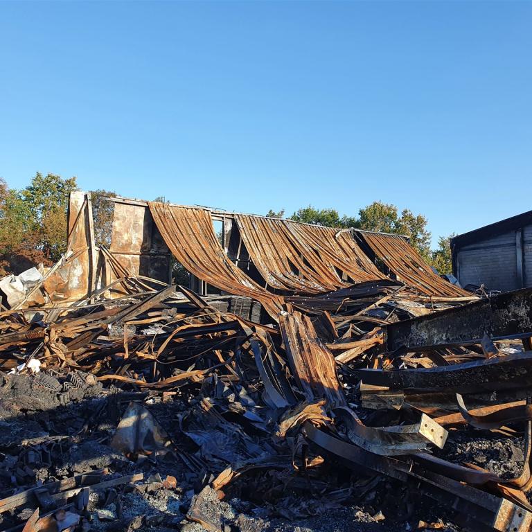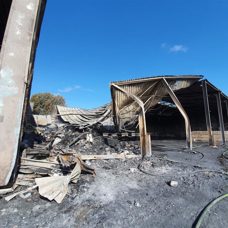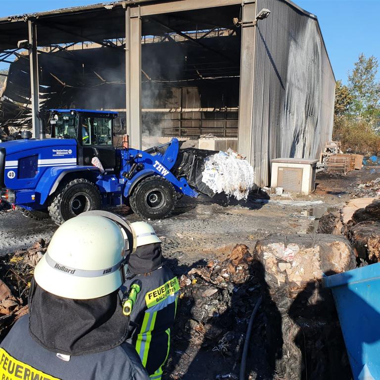 Mehrere Radlader haben das brennende Material aus der Halle gefahren, dort wurde es von unseren Trupps abgelöscht.