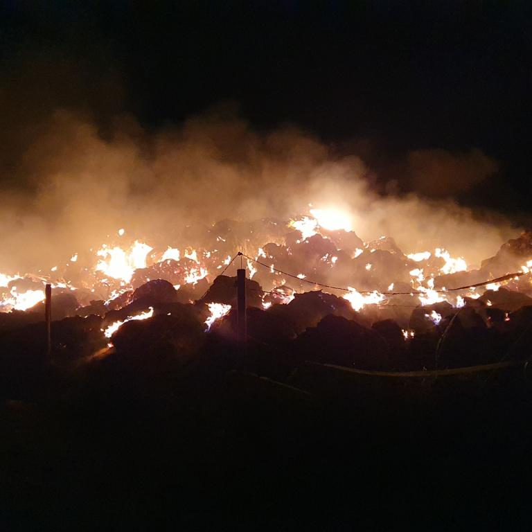 Am Rand von Birlenbach brannte eine Feldscheune, in welcher Rundballen lagerten, in voller Ausdehnung. In Folge des Brandes stürzte die Scheune in sich zusammen. Ca. 500 Rundballen sind durch das Feuer zerstört worden.