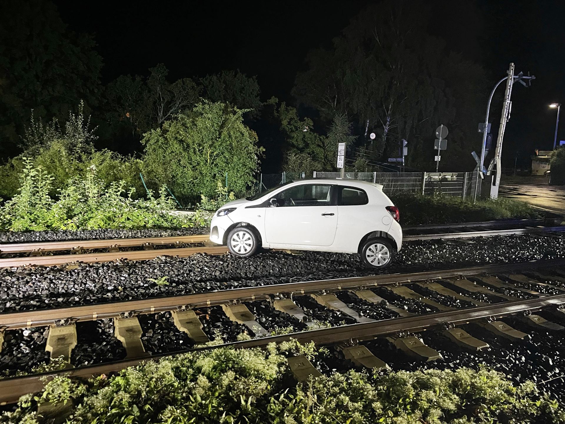 Wir wurden gegen 22:43 Uhr zu einem PKW im Gleisbett der Bahn gerufen. Der Fahrer hatte die Kontrolle über sein Fahrzeug verloren und konnte aus eigener Kraft den PKW nicht mehr zurück auf die Straße fahren.