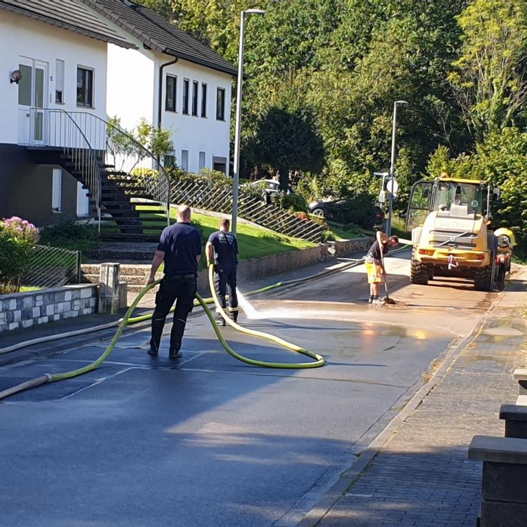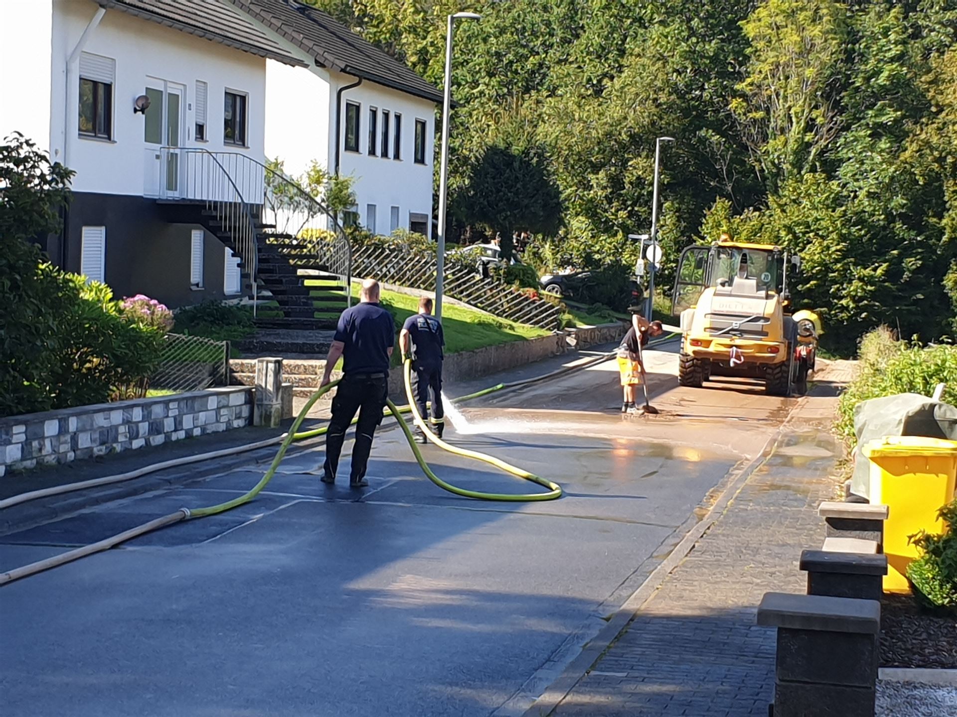 Die starken Regenfälle des heutigen Tages hatten die Kanaleinläufe am Friedhofsparkplatz zugesetzt. Diese wurden gereinigt und die Hauptstraße von grobem Dreck befreit. Auch wurden die Gullys entlang der Straße nochmals geleert. Der Einsatz konnte gegen 1:15 Uhr beendet werden.