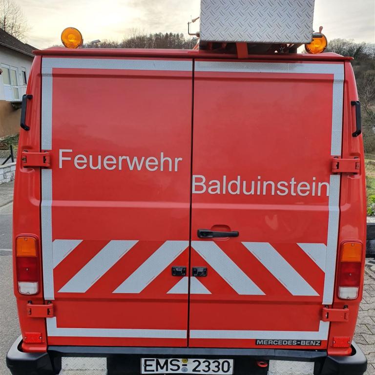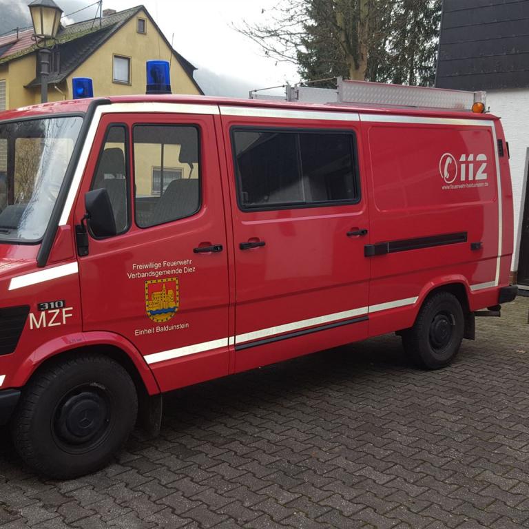 Das MZF auf Mercedes-Benz-Transporter (MB 310 aus dem Jahr 1994) war in Balduinstein von November 2016 bis März 2023 in Dienst. Vorher war das Fahrzeug bei den Feuerwehren in Altendiez und Langenscheid im Einsatz.