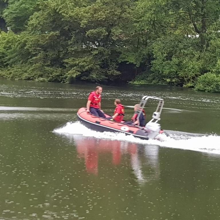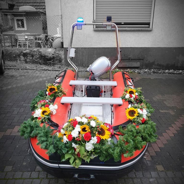 Unser Förderverein hat das Boot zwischenzeitlich mit Blaulicht und Arbeitsscheinwerfer ausgestattet.