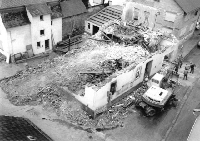 Am Donnerstag den 30.04.1981 wurde das Gebäude der alten Schule abgerissen. Das 1836 errichtete Gebäude diente in seiner Geschichte als örtliche Volksschule, beherbergte Wohnungen, war Sitz der Gemeindevertreterversammlungen, diente als Wahllokal und war in letzter Funktion das Gerätehaus und die Garage der Feuerwehr. Nachdem das Haus baufällig geworden war, soll nun nach Genehmigung der Verbandsgemeinde Diez an fast gleicher Stelle ein neues Gerätehaus gebaut werden. Im neuen Haus soll neben der Garage auch ein Aufenthalts / und Schulungsraum untergebracht werden.