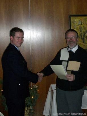 Nach Abschluss der Ausbildung zum Gruppenführer an der Landesfeuerwehrschule in Koblenz wurde Andreas Holleyn am 20.12.2007 durch den Bürgermeister der Verbandsgemeinde Diez, Herrn Franz Klöckner, zum Brandmeister und zum stellvertretenden Wehrführer der Feuerwehreinheit Balduinstein offiziell ernannt.