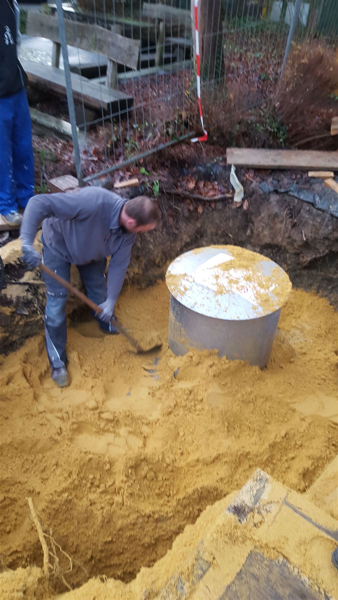 Die Grube für den Gastank wurde vom Förderverein in Eigenleistung gebaut. Vielen Dank an die Firma Baugeschäft Lenau für die Unterstützung bei diesem Projekt.