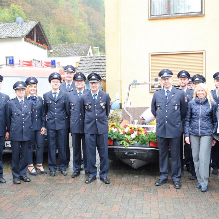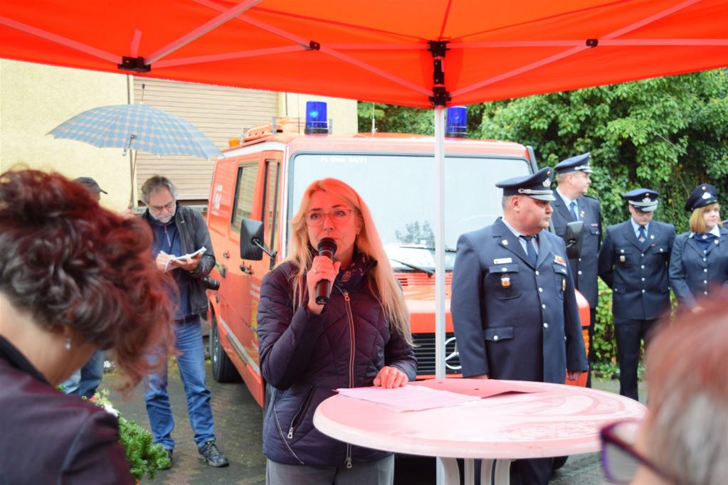 Für die Verbandsgemeinde Diez sprach Bürgermeisterin Maren Busch ein Grußwort und bekräftigte dabei, dass mit dem neuen TSF-W die Rahmenbedingungen für die ehrenamtliche Hilfestellung der Feuerwehr einmal mehr deutlich verbessert wurde. Sie sei sicher, dass auf diese Weise dazu beitragen wurde, dass die aktiven Mitglieder der Wehr weiterhin motiviert einem „so großartigen Hobby, einem so wichtigen Ehrenamt die Treue halten, damit die Verbandsgemeinde ihre Pflichtaufgaben im Brandschutz auch langfristig erfüllen kann!“