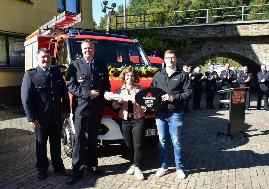 VG-Wehrleiter Marcus Grün stellte heraus, dass es sich bei dem neuen Fahrzeug nicht bloß um ein herkömmliches Feuerwehrauto handelt, sondern dass es speziell ausgerüstet sei, um Wald- und Vegetationsbrände zu bekämpfen. Neben zeitgemäßer Technik, so Grün, sei immer auch die dazugehörige Mannschaft enorm wichtig – und so galt es für eine Delegation aus der Balduinsteiner Einheit, die Wald- und Vegetationsbrandbekämpfung in zusätzlichen Lehrgängen zu erlernen.
