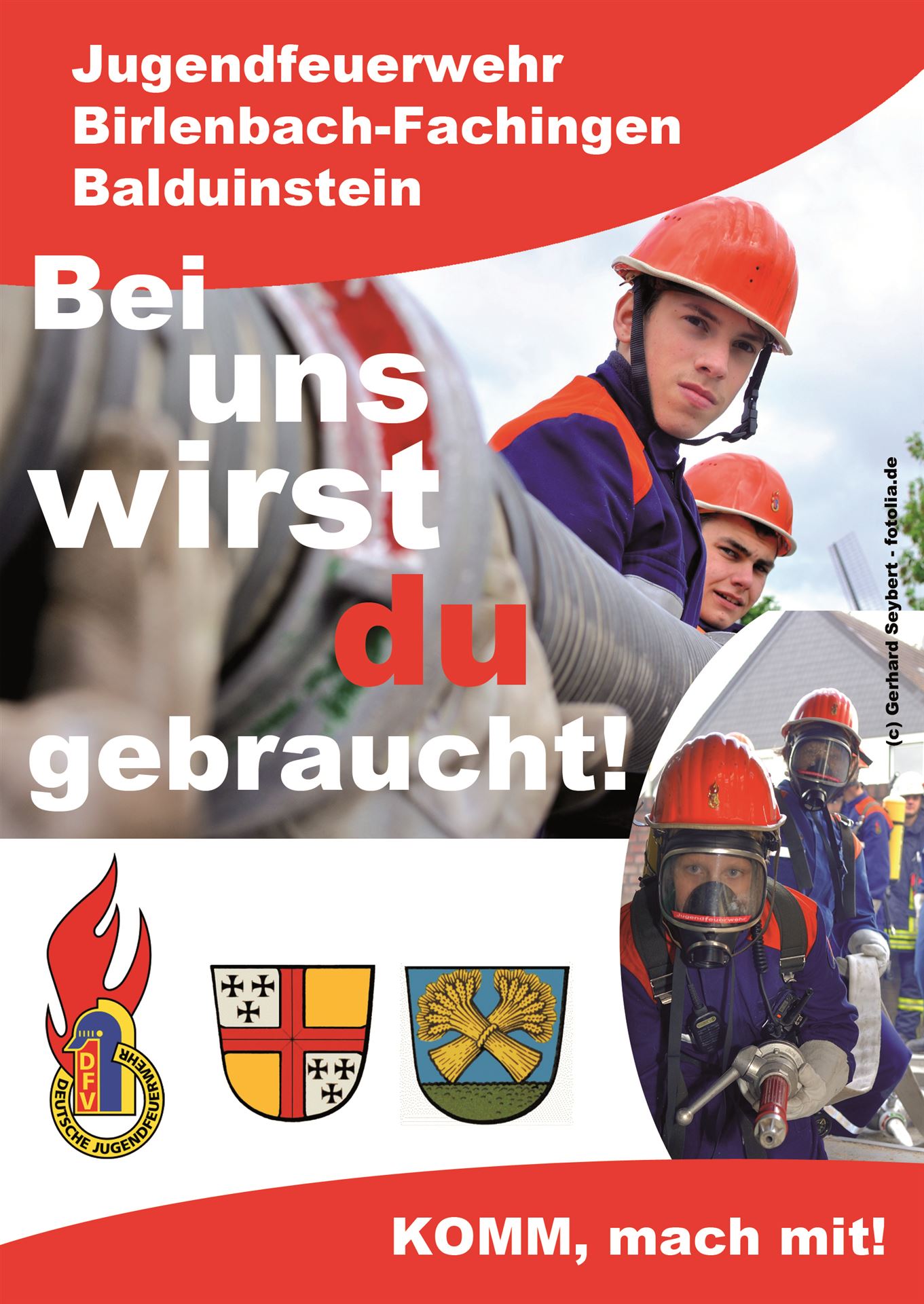 Die Einheiten Birlenbach-Fachingen und Balduinstein arbeiten ab sofort im Bereich der Jugendfeuerwehr zusammen. Kinder aus Balduinstein können daher in der JF Birlenbach-Balduinstein Mitglied werden. Übungen finden jeden Mittwoch von 17:45 - 19:00 Uhr statt. (außer in den Ferien) Treffpunkt ist am Feuerwehrgerätehaus. Übungen finden in Balduinstein und Birlenbach statt.